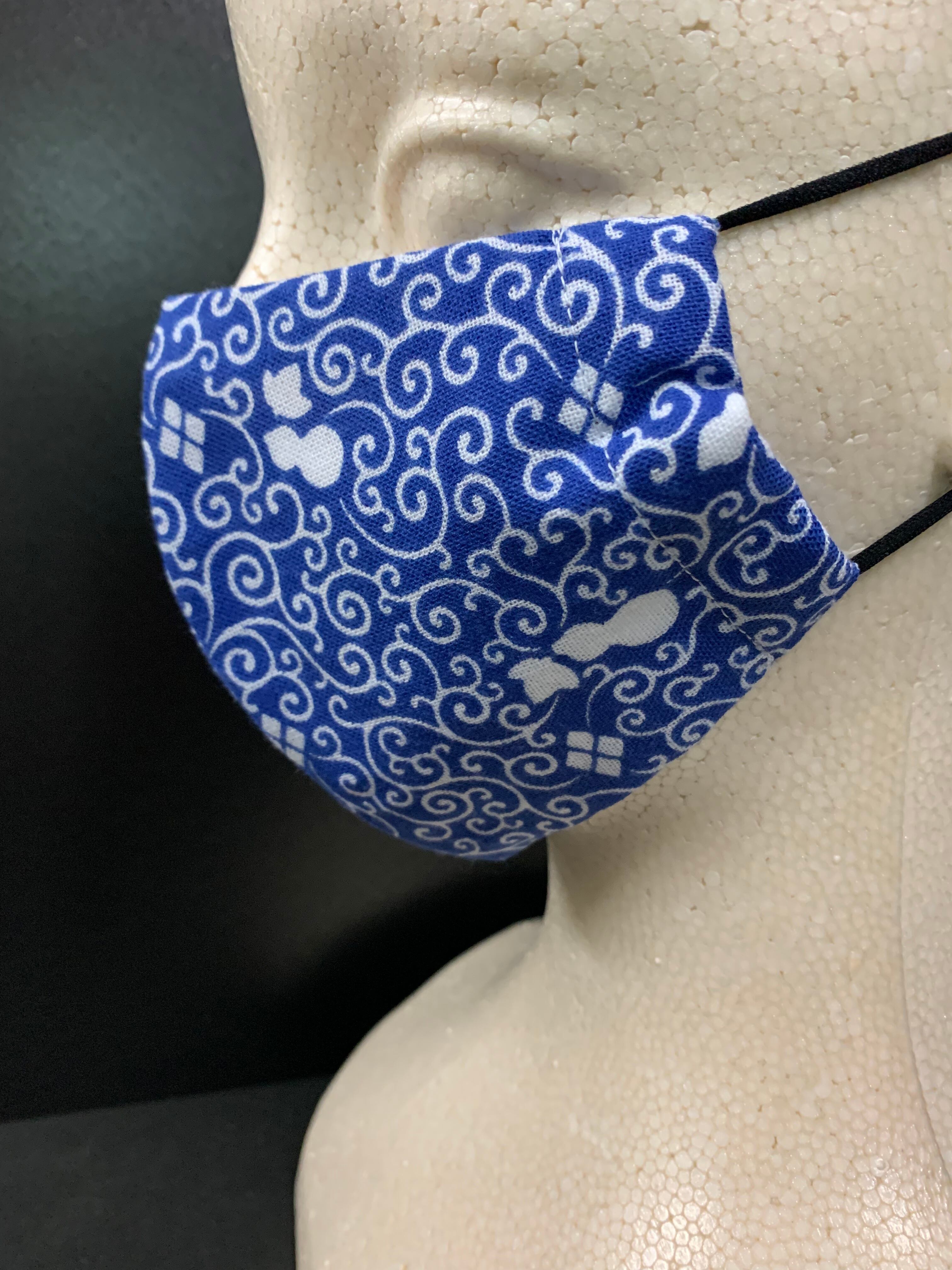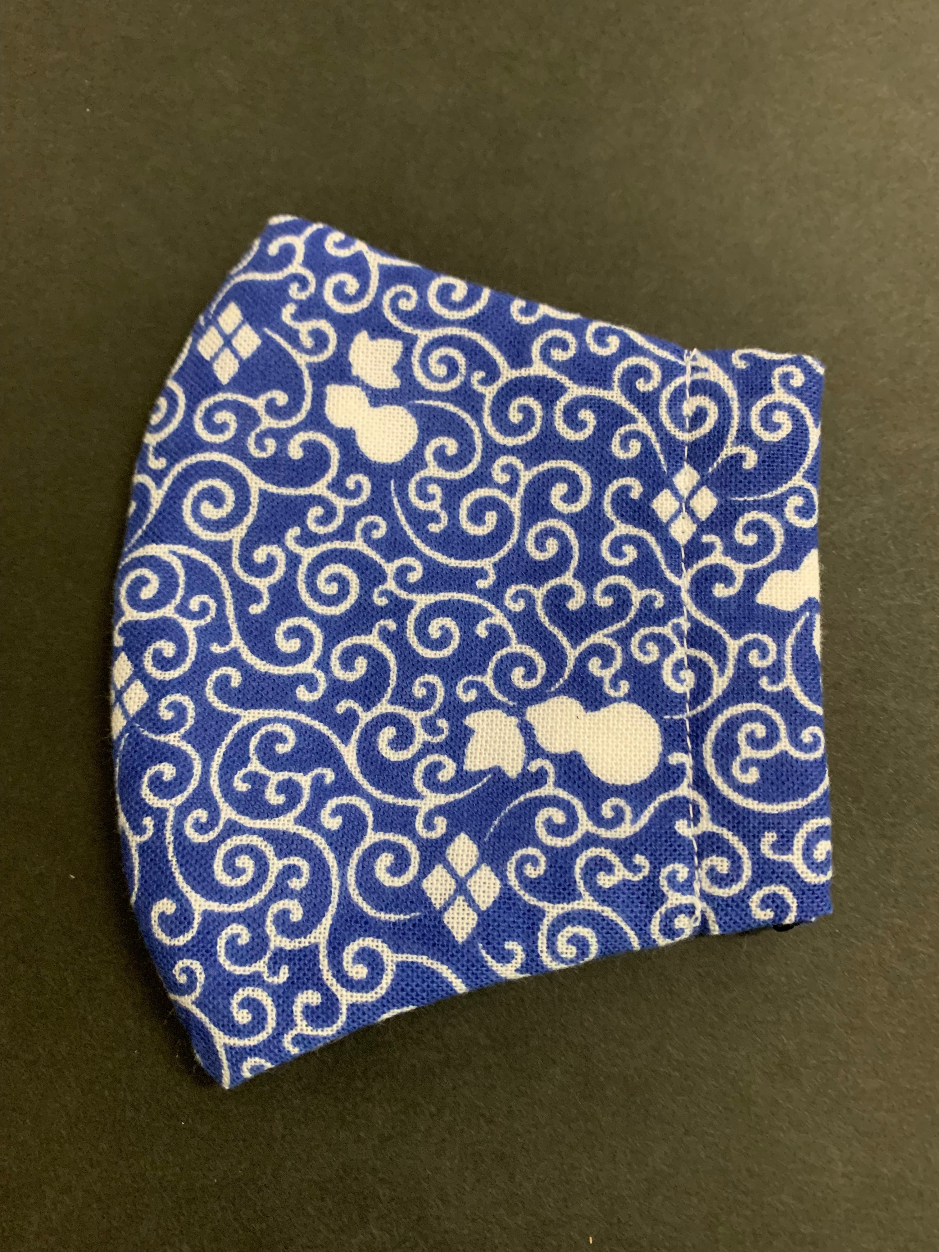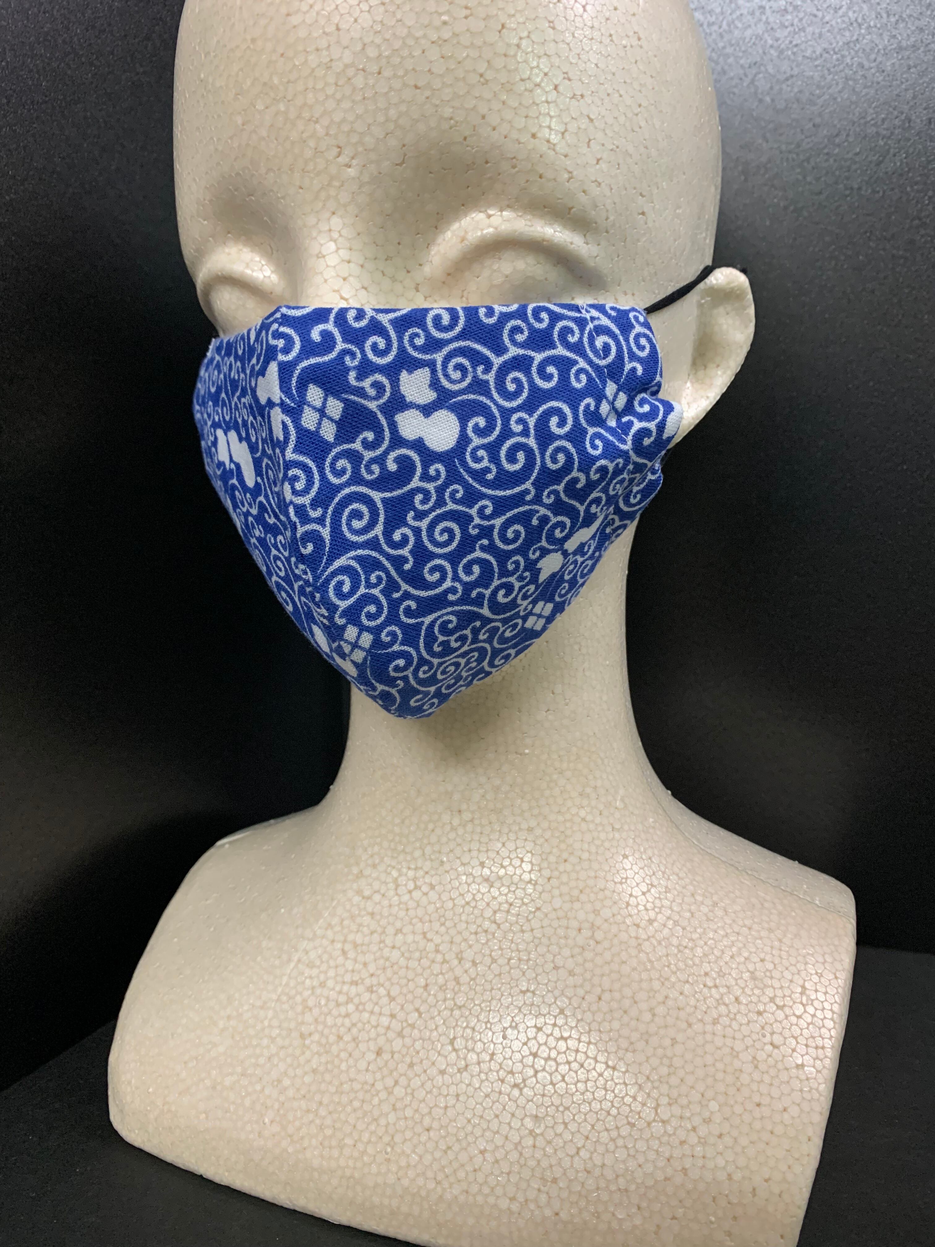 手拭いマスク 唐草瓢箪柄 青色
